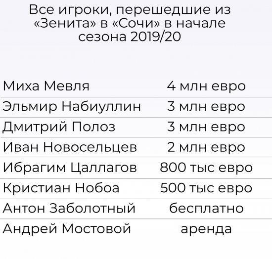 При этом состав у новой команды Федотова был совсем недурный. За полгода до этого в "Сочи" прибыл десант из восьми (!) футболистов, которые оказались не нужны в "Зените". Именно с того момента "Сочи" получил репутацию фарм-клуба питерцев, помогающего старшему товарищу обходить финансовый фейр-плей, освобождая зарплатную ведомость.