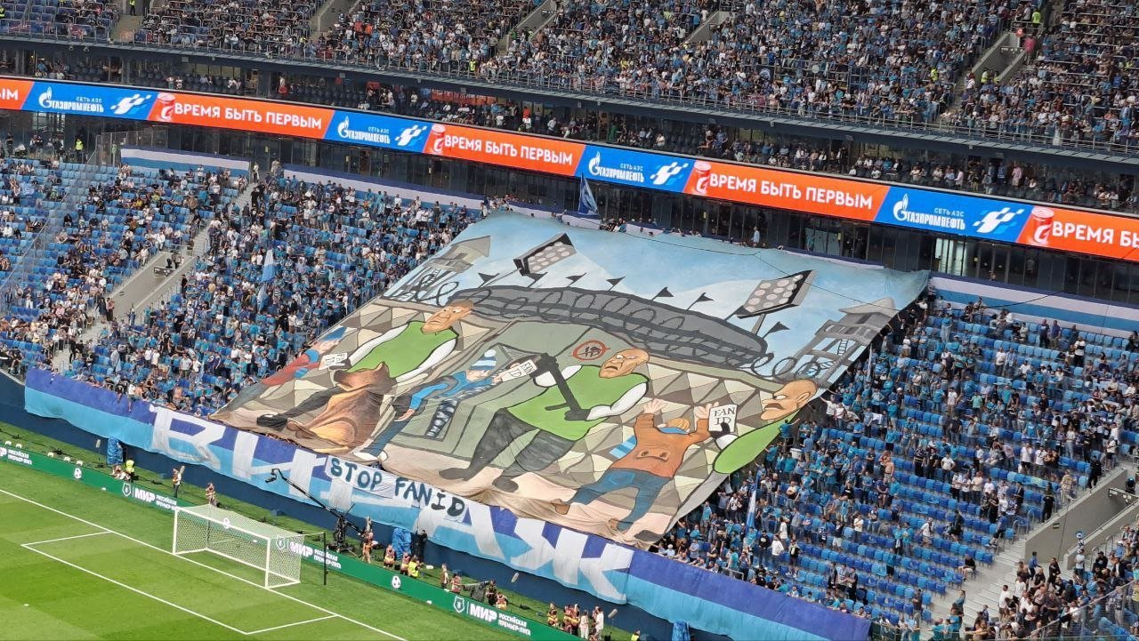 Напомним, фанаты "Зенита" перед началом матча вывесили баннер против введения Fan ID. Ранее сообщалось, что полиция Петербурга проводит проверку из-за этого баннера.