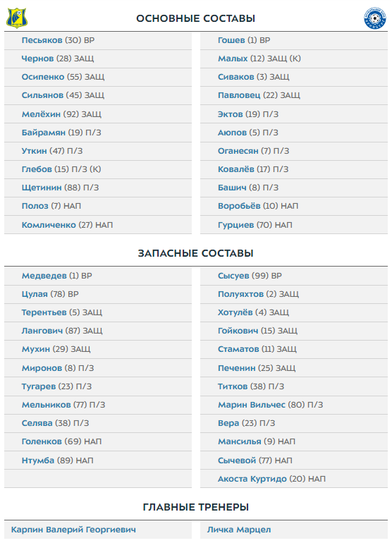 Стали известны составы "Ростова" и "Оренбурга" на очный матч 4 тура РПЛ.