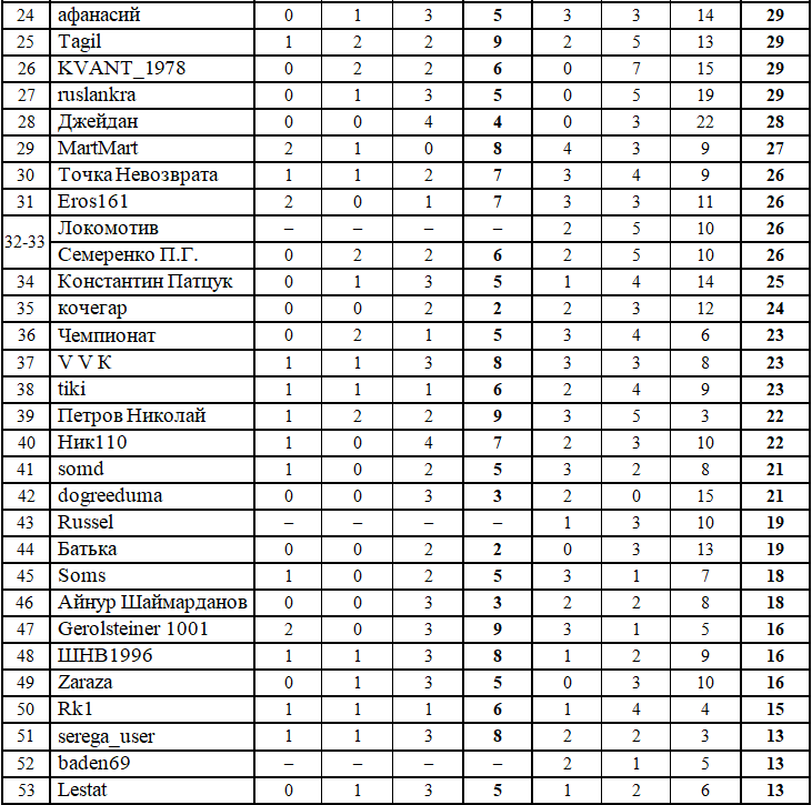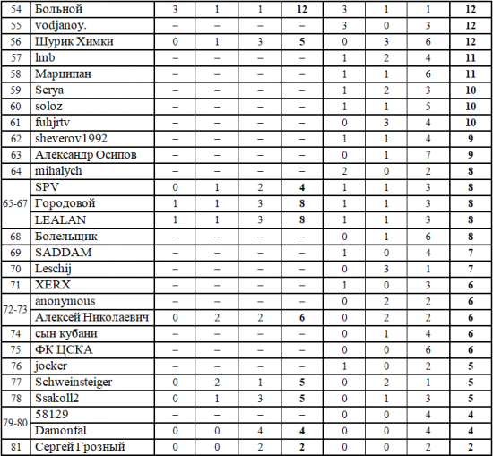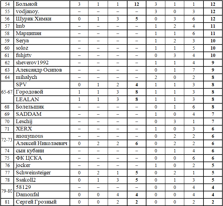 P.S. Друзья, проверяйте, пожалуйста, свои набранные очки, на случай непредвиденной ошибки - и если вдруг обнаружите такую, пишите об этом в комментариях. Организуем перепроверку вашего прогноза и всё запишем по справедливости.