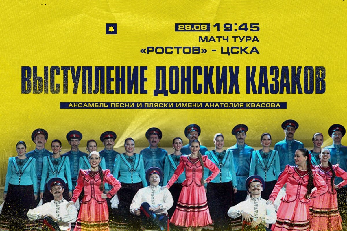 "Вас ожидает яркое предматчевое шоу - выступление легендарного Ансамбля песни и пляски Донских казаков им. Анатолия Квасова. Этот коллектив - визитная карточка нашего края, в своем творчестве артисты исполняют исконно казачьи песни и сохраняют танцевальные традиции Донской земли. Однако для всех посетителей матча Ансамбль запоет совершенно по-другому!" - говорится в сообщении пресс-службы Донского клуба.