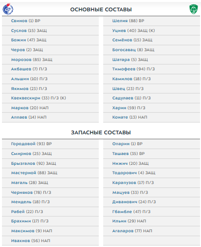 "Факел" и "Ахмат" назвали стартовые составы на матч 23-го тура РПЛ