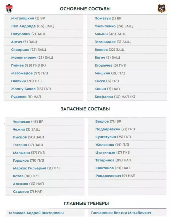 Наставники подмосковных "Химок" и екатеринбургского "Урала", Андрей Талалаев и Виктор Гончаренко, определились с составами своих команд на матч 29-го тура РПЛ.
