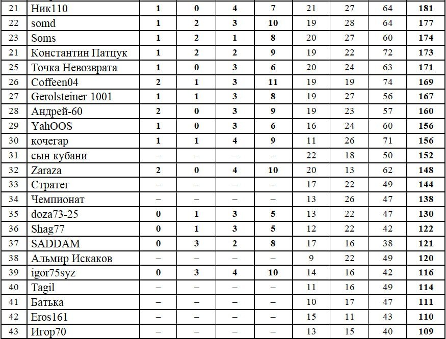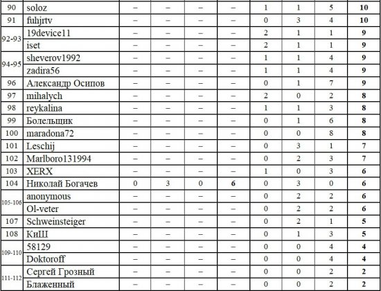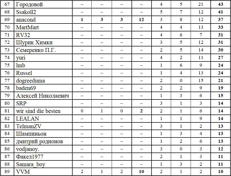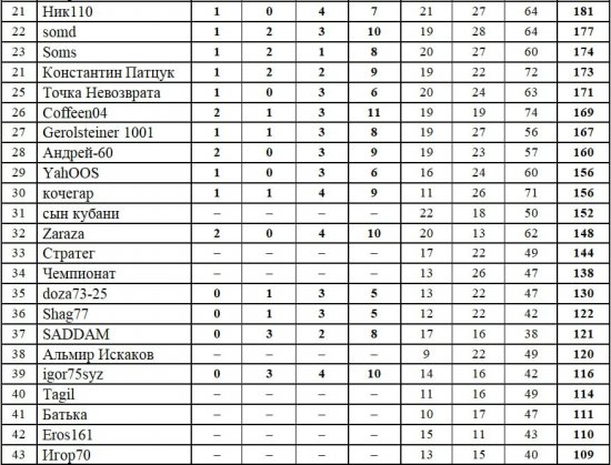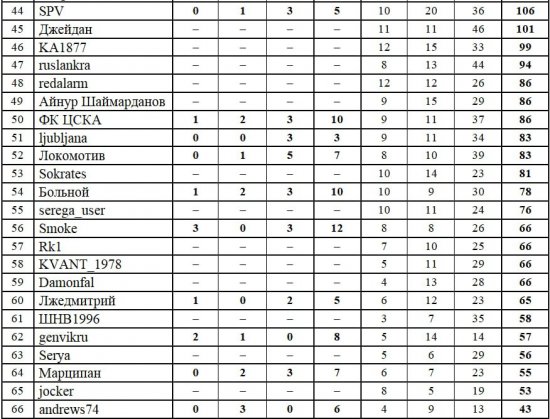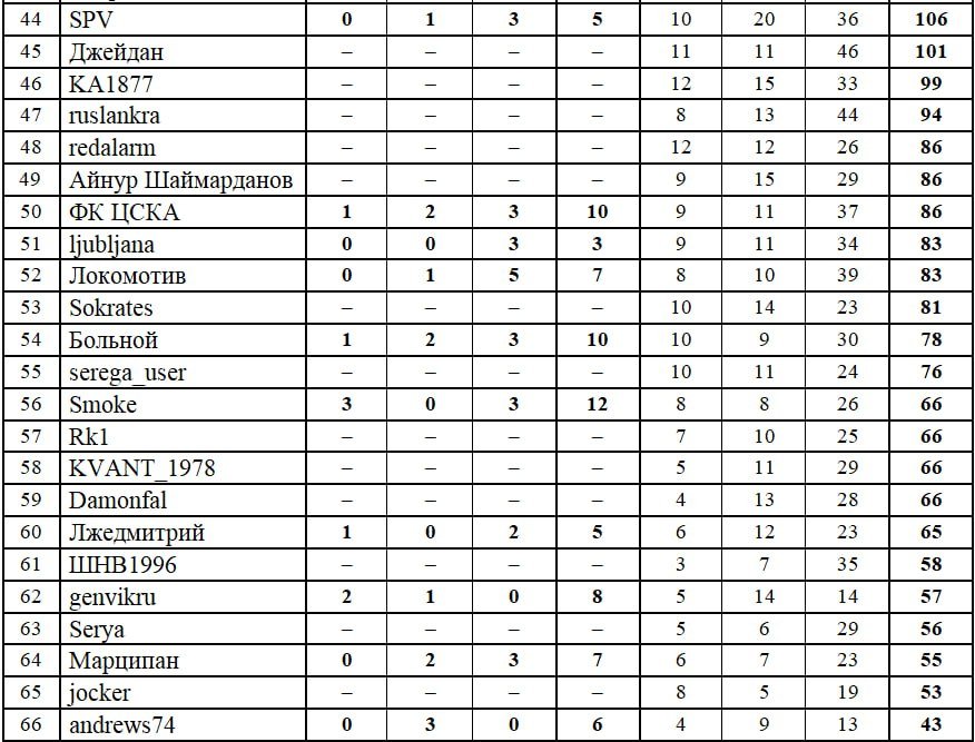 Второе место - афанасий, 213 очков