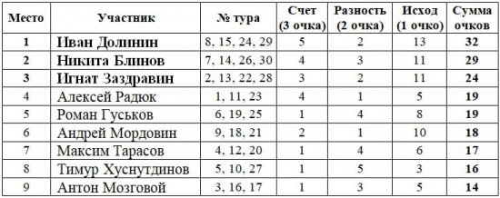Итак, лучшими прогнозистами прошедшего сезона стали: