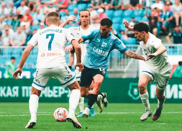 В первом тайме «Динамо» сделало хороший задел на победу. Москвичи использовали высокий прессинг, действовали предельно агрессивно и смело, к чему соперник оказался не готов. «Крылья» в обороне выглядели совсем слабо. И уже на 8-й минуте после многоходовой комбинации Смолов вывел Захаряна на ударную позицию, а Арсен классно подсёк мяч над вратарём, попав в ворота под углом.