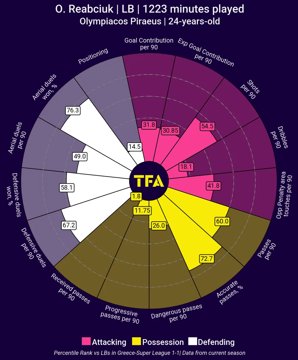 Ниже представлены некоторые статистические данные Рябчука, которые помогут лучше оценить футболиста.
