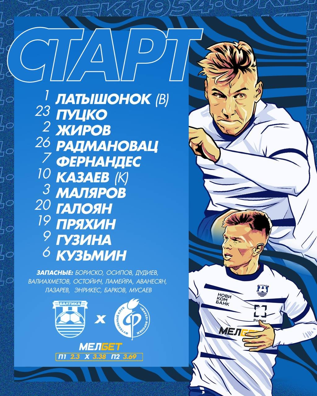 "Балтика" и "Факел" обнародовали стартовые составы на очный поединок 3-го тура РПЛ.