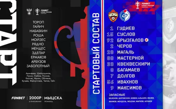 Сегодня московский ЦСКА на родной для себя "ВЭБ Арене" проведет матч второго тура групповой стадии Пути РПЛ в Кубке России. В соперниках у "армейцев" воронежский "Факел". Команды выйдут на поле в 18:30 по столичному времени. Их стартовые составы на очную встречу уже известны.