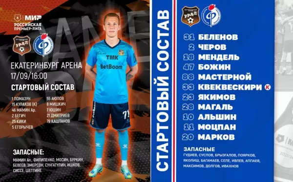 "Урал" – "Факел": составы команд на матч 8-го тура РПЛ