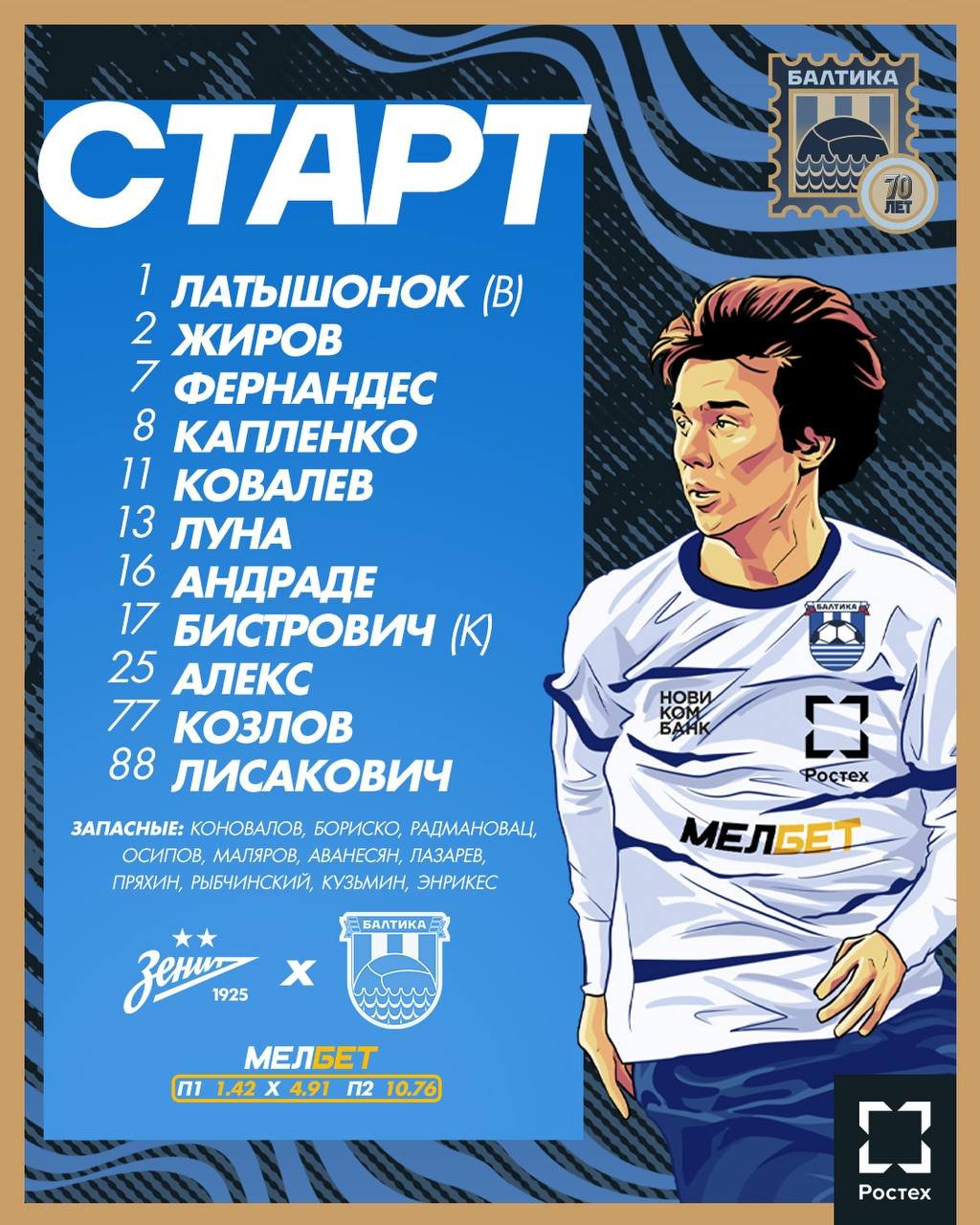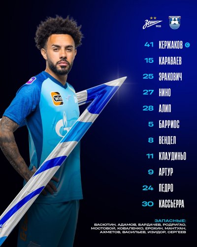 "Зенит" и "Балтика" объявили стартовые составы на очный матч 23-го тура РПЛ.