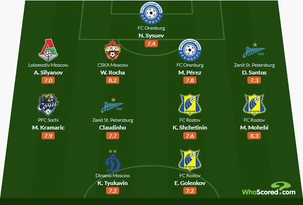 Whoscored представил сборную лучших игроков РПЛ по итогам прошлого месяца.