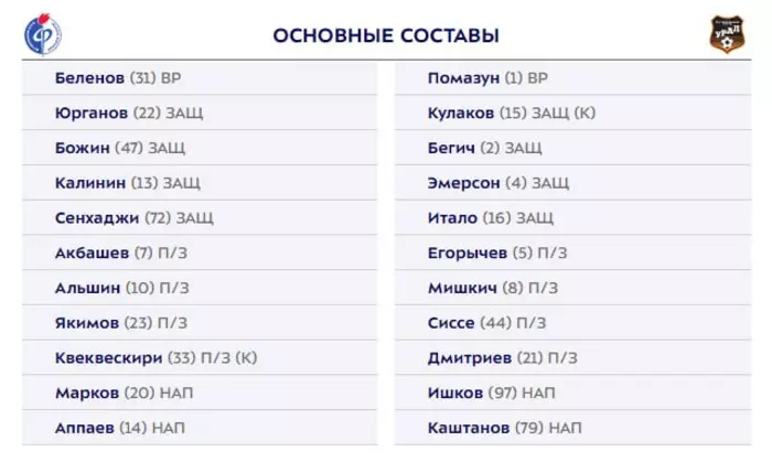 "Факел" и "Урал" назвали стартовые составы на матч 28-го тура РПЛ