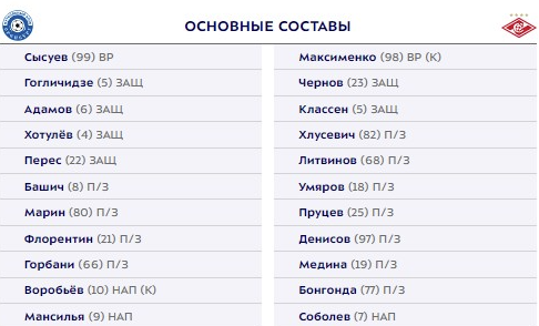 Стали известны стартовые составы "Оренбурга" и "Спартака" на матч 30-го тура чемпионата России.