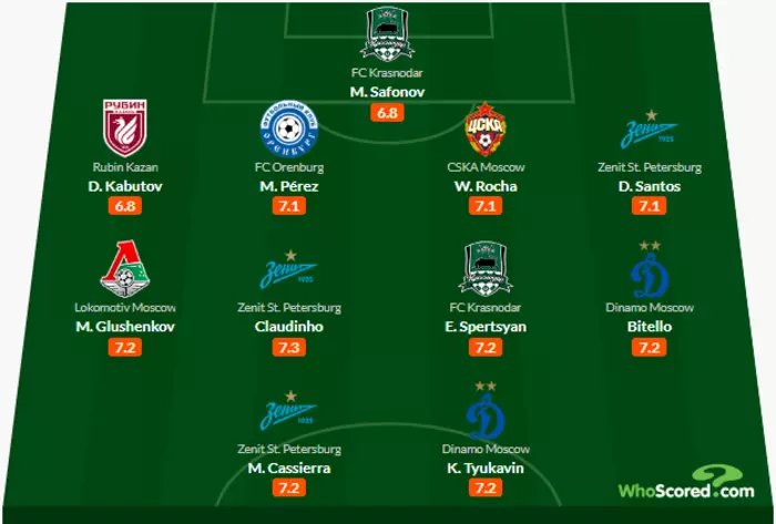 Авторитетный аналитический портал Whoscored.com составил символическую сборную лучших футболистов по итогам завершившегося сезона российской Премьер-лиги.