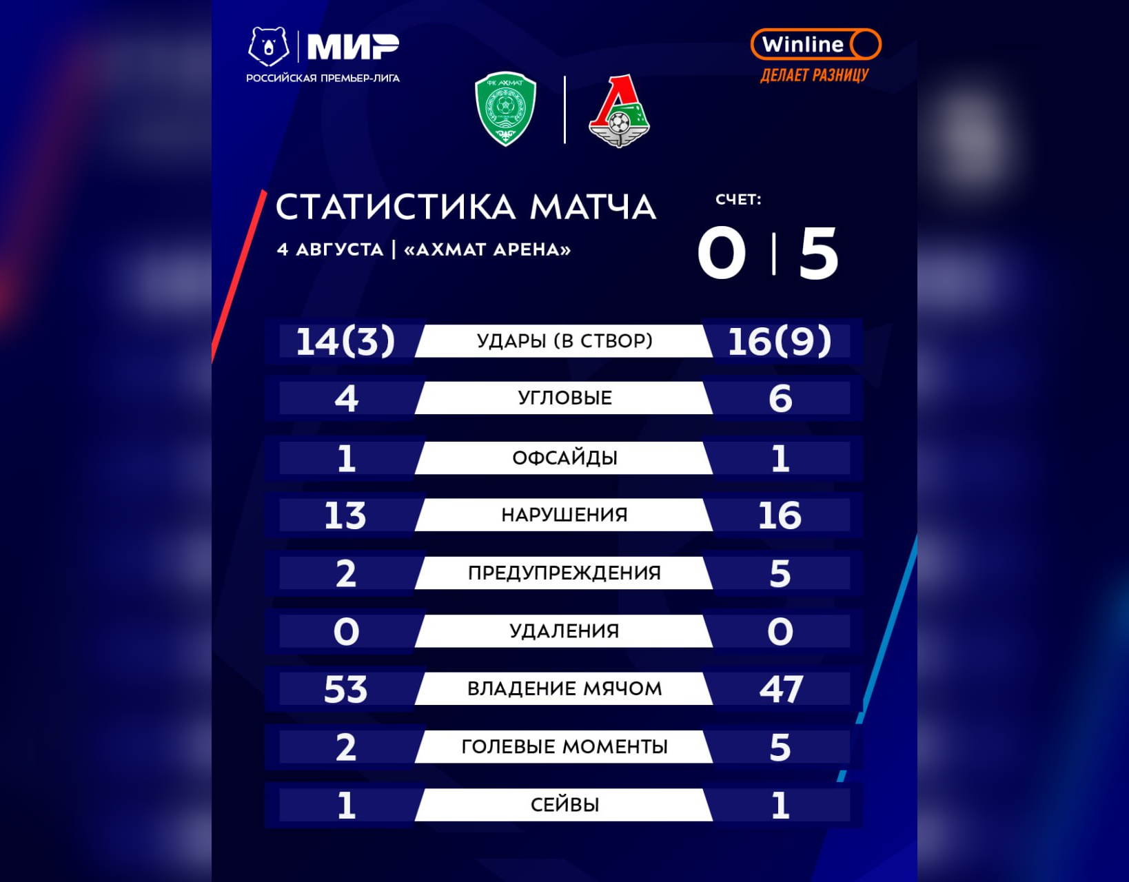 Уже в компенсированное время счёт стал неприлично крупным. И снова Батраков – получил мяч в штрафной и нанёс точный удар по воротам. 5:0! «Локомотив» набрал 6 очков и на позитивной волне будет готовиться к домашней игре с махачкалинским «Динамо». «Ахмат» ожидает встреча с другим московским клубом – «Спартаком».