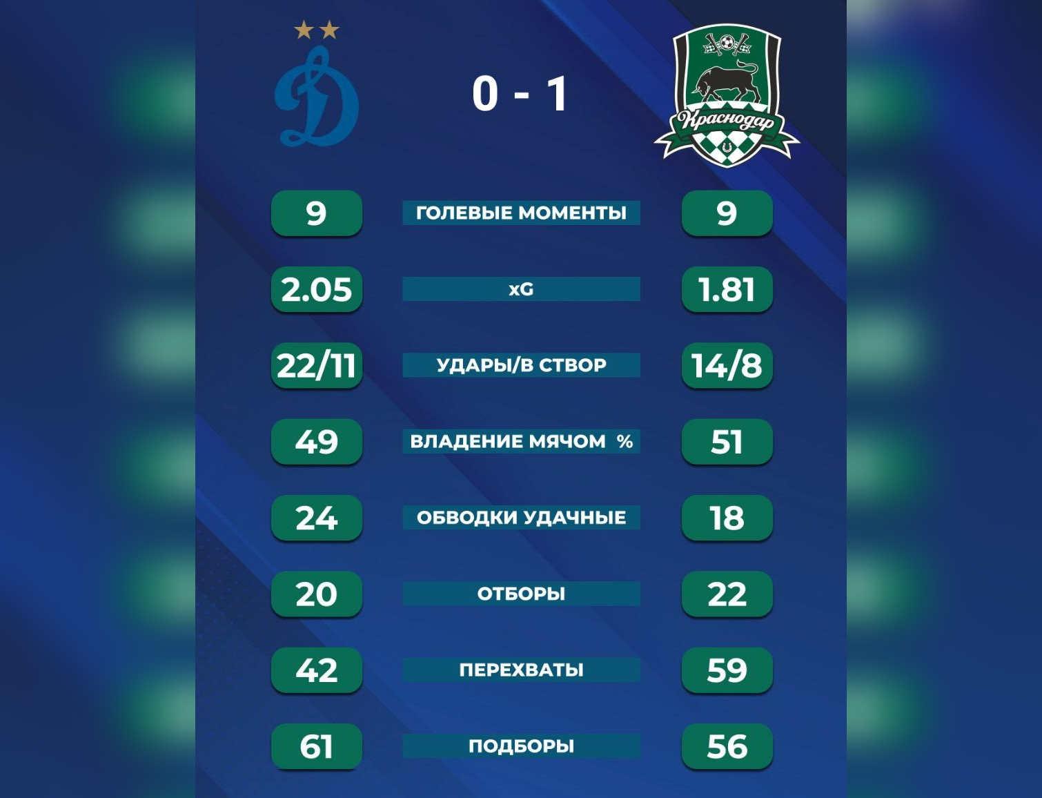 «Динамо» – «Краснодар» 1:0 (1:0, 0:0)