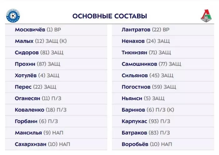 "Оренбург" и "Локомотив" объявили стартовые составы на матч 8-го тура РПЛ
