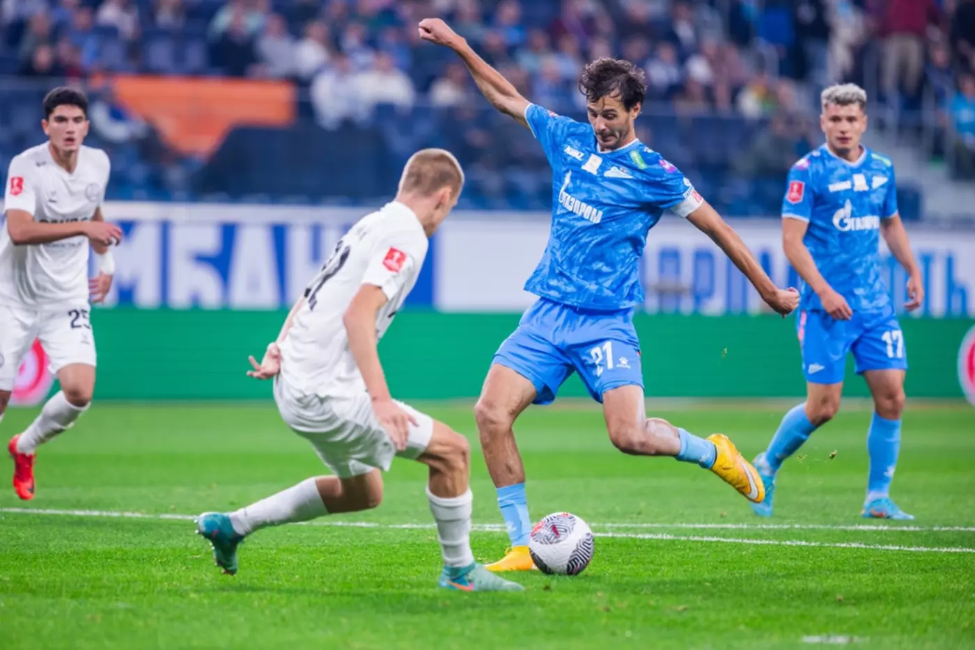 "Зенит" разгромно победил "Акрон" (5:1) в матче группового этапа Кубка России. Экс-форвард "Зенита" Артем Дзюба, выступающий с нового сезона за "Акрон", не попал в заявку своей команды на матч. Дзюба пополнил состав "Акрона" в статусе свободного агента в сентябре. В первых 4-х матчах за тольяттинский клуб на счету форварда 1 забитый мяч и 3 результативные передачи.