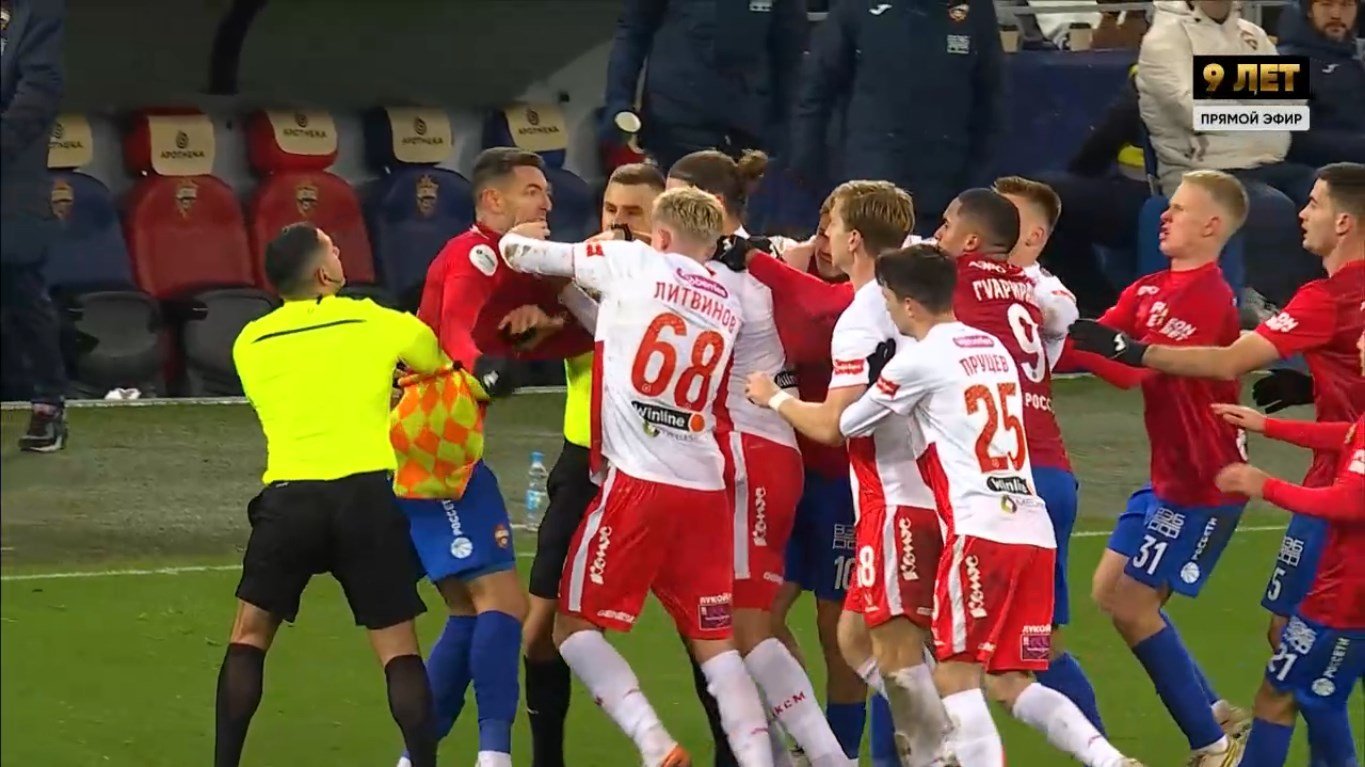 Вспыхнуло все в начале второго тайма. Кисляк совершил опасный подкат под Барко, но Сухой промолчал и дал продолжить играть. Через считанные мгновения Роша влетел в Угальде, а потом схватил за шею Умярова. Футболисты устроили драку – на «армейского» защитника накинулись Литвинов и Бабич, за что получили в ответ от бразильца мощным ударом справа.