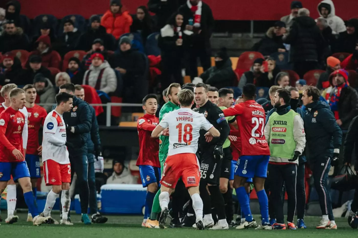 Матч ЦСКА и "Спартака" проходил 2 ноября на домашнем стадионе армейцев, гости одержали победу со счетом 2:0, за красно-белых отличились Тео Бонгонда и Хесус Медина.