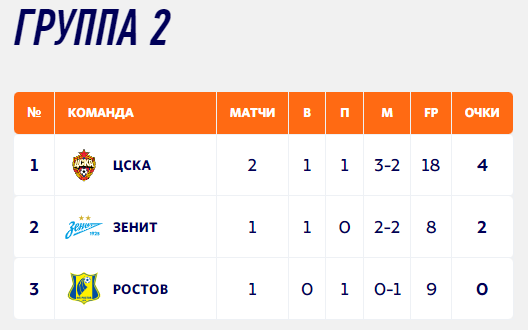Группа 2: ЦСКА, «Зенит», «Ростов»