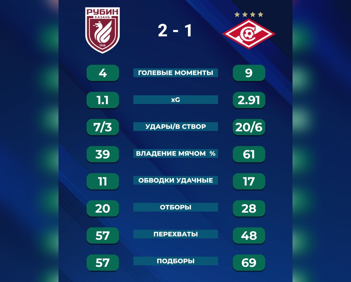 «Спартак» создал кучу моментов (за 90 минут – 20 ударов и 6 в створ, 2,91 xG), но красно-белых подвела реализация. Как итог, первое поражение за 8 матчей и 3-очковое отставание от лидеров - «Краснодара» и «Зенита».