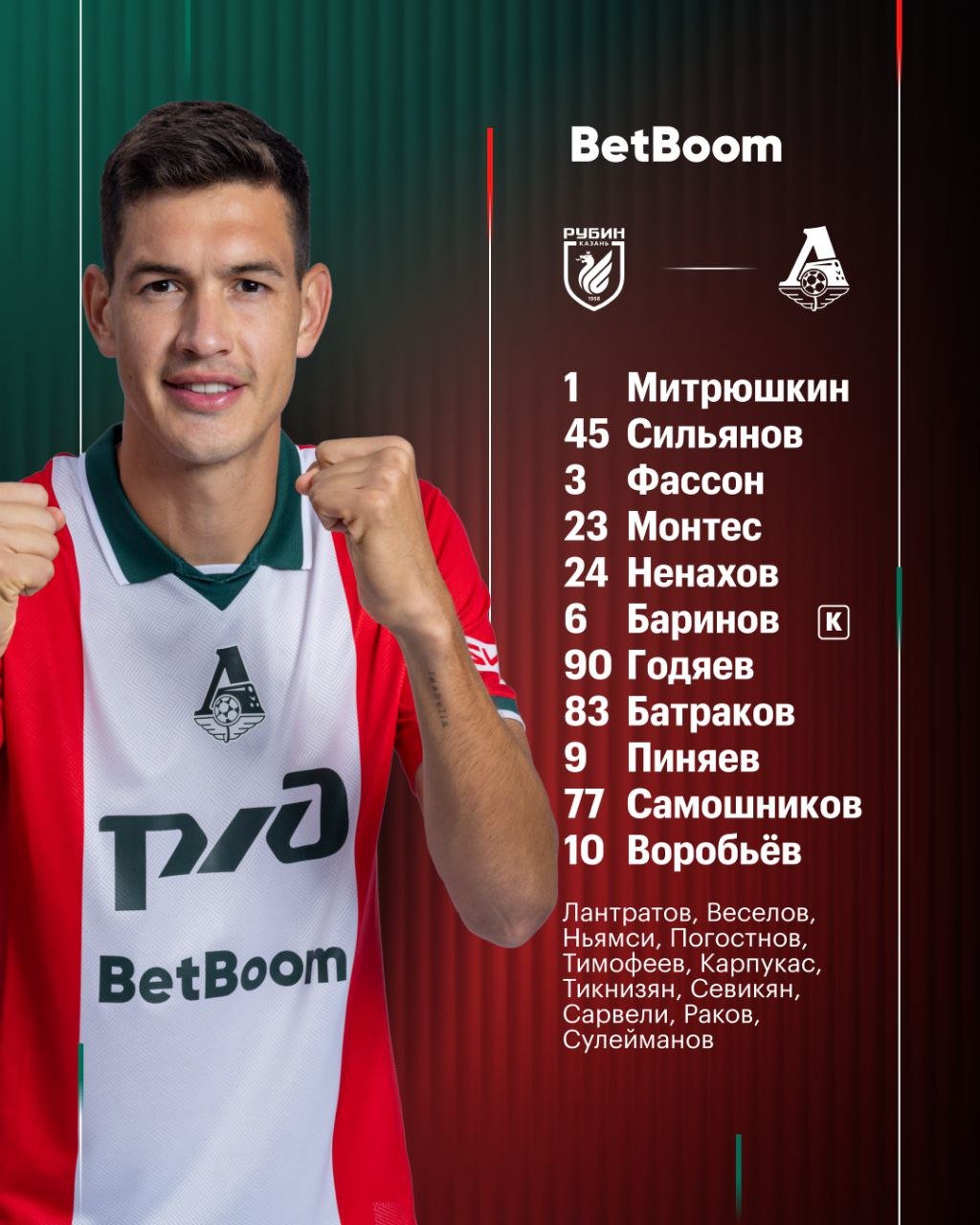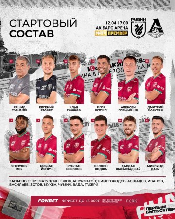 Стали известны составы "Рубина" и "Локомотива" на игру 24-тура чемпионата России.