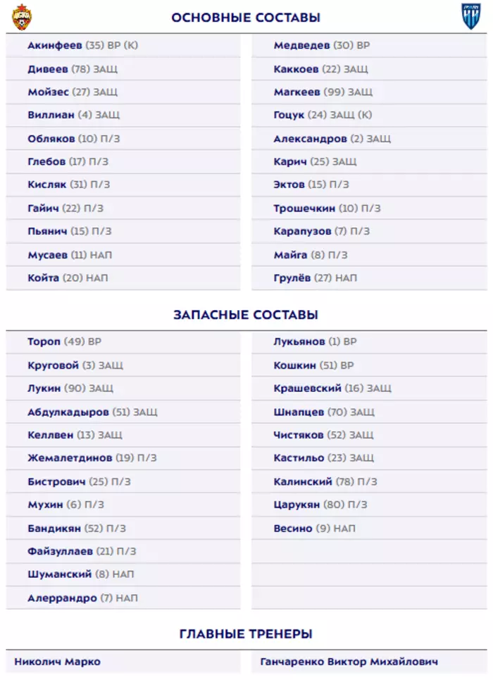 Официальный сайт Российской премьер-лиги опубликовал составы команд на матч заключительного 30 тура национального первенства сезона-2024/2025 ЦСКА - "Пари НН".