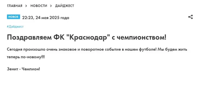 Напомним, в субботу, 24 мая, "Краснодар" в матче 30-го тура Российской Премьер-Лиги дома одержал победу над московским "Динамо" (3:0). Благодаря этому результату "быки" набрали 67 очков и стали недосягаемыми для петербургского "Зенита" в турнирной таблице РПЛ.