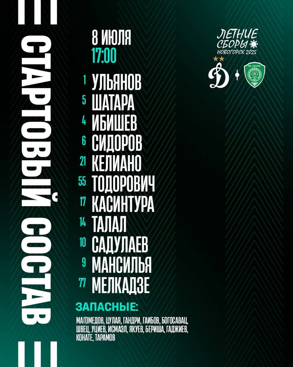 "Ахмат" и "Динамо" объявили составы на товарищескую игру