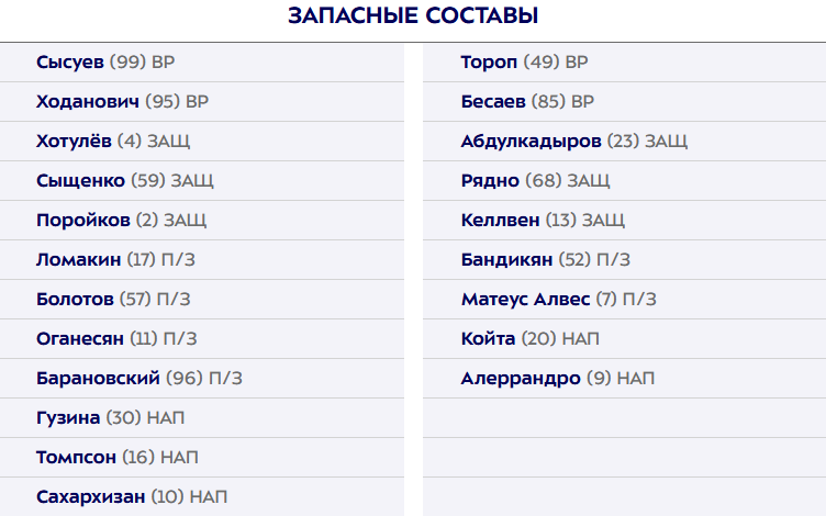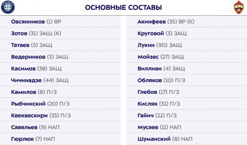 Стали известны составы "Оренбурга" и ЦСКА на очную встречу.