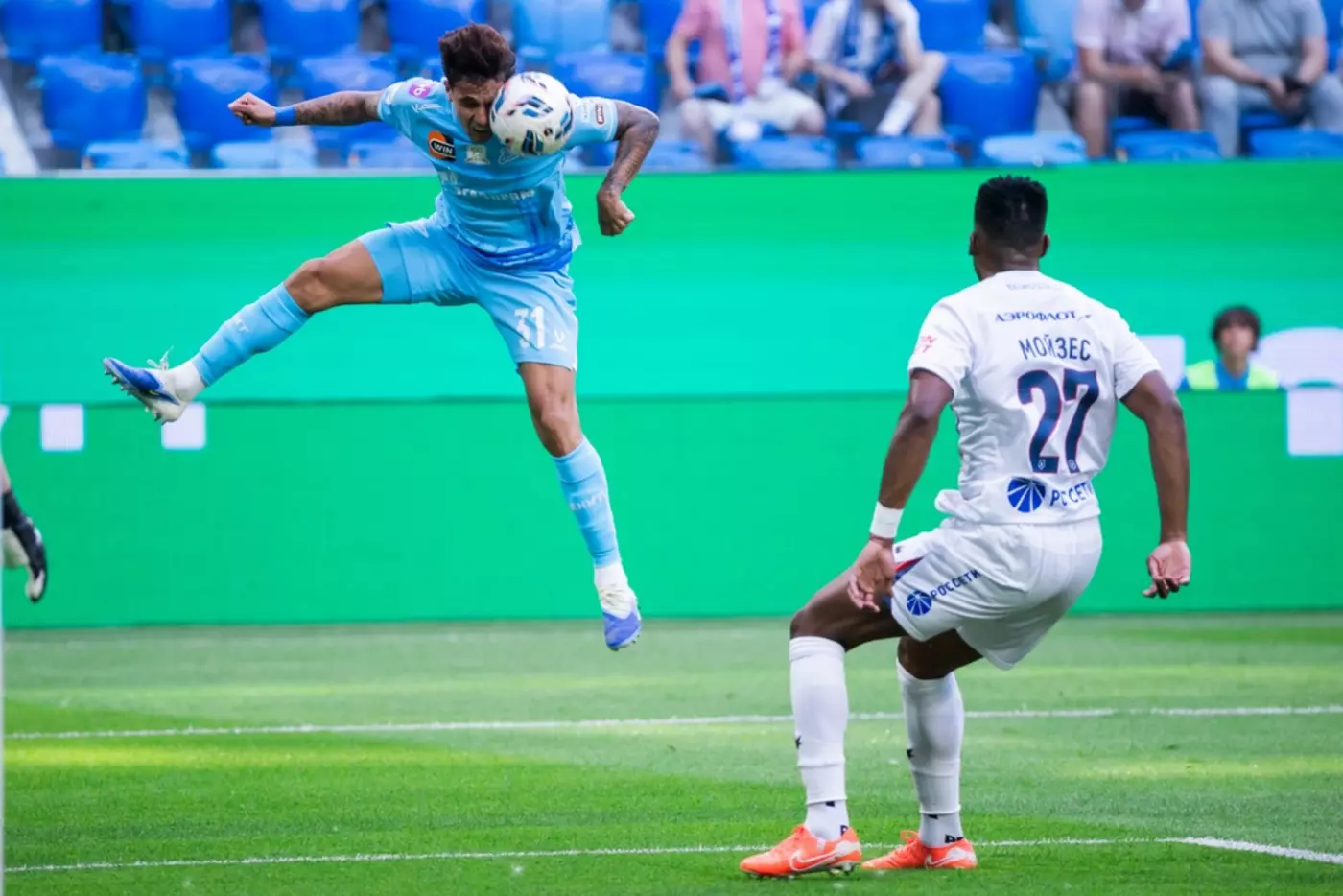 Счет в матче на 33 минуте открыл нападающий ЦСКА Алеррандро, голевую передачу на свой счет записал полузащитник Матвей Кисляк. Во втором тайме защитник гостей Данил Круговой в своей штрафной площади нарушил правила на Густаво Мантуане - форвард петербуржцев Александр Соболев сравнял счет, реализовав одиннадцатиметровый удар.