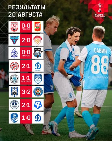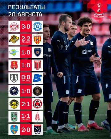 Сегодня, 20 августа, состоялось 17 матчей в рамках второго раунда Пути регионов Кубка России.