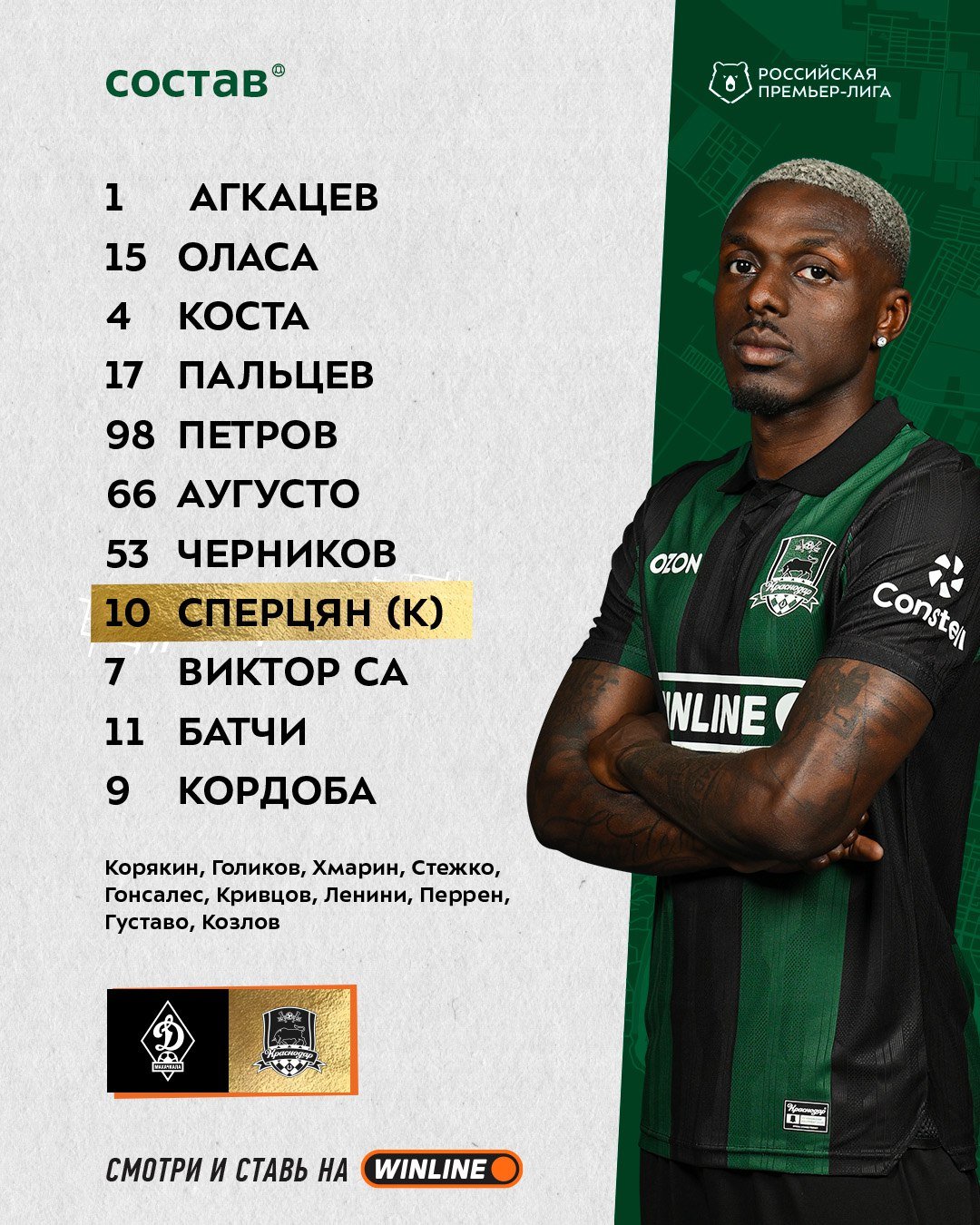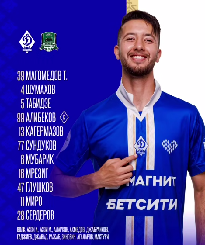 Стали известны стартовые составы "Динамо" Махачкала и "Краснодара" на очный матч.