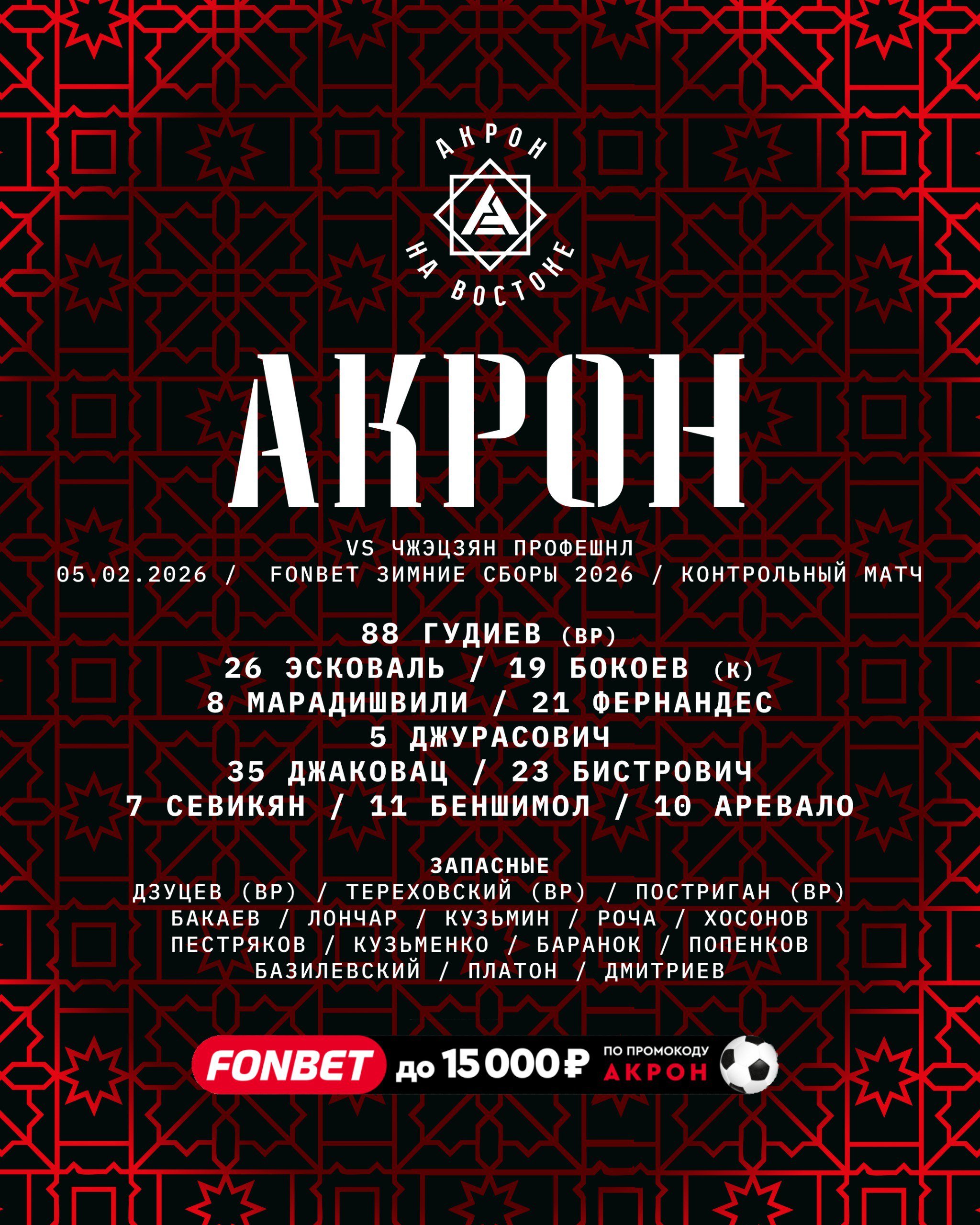 "Акрон" назвал стартовый состав на матч против китайского клуба