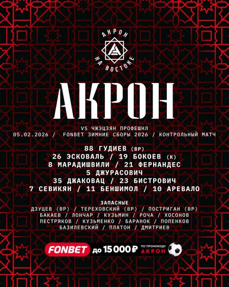 Сегодня, 5 февраля, "Акрон" проведет товарищеский матч с китайским клубом "Чжецзян Профешнл". Игра состоится в Дубае (ОАЭ) в рамках зимних сборов и начнется в 16:30 по московскому времени.