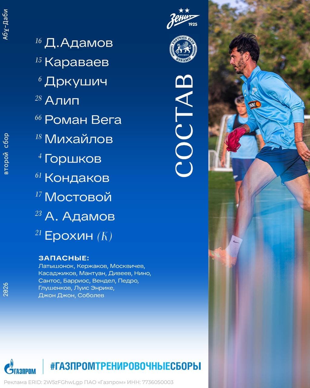 "Зенит" назвал стартовый состав на матч против "Динамо" Самарканд