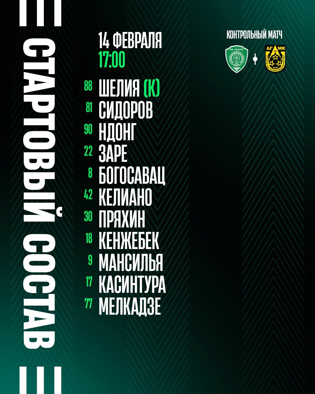 "Ахмат" назвал стартовый состав на контрольный матч против АГМК