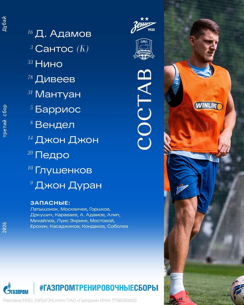 Кордоба и Дуран - в стартовых составах "Краснодара" и "Зенита" на товарищеский матч