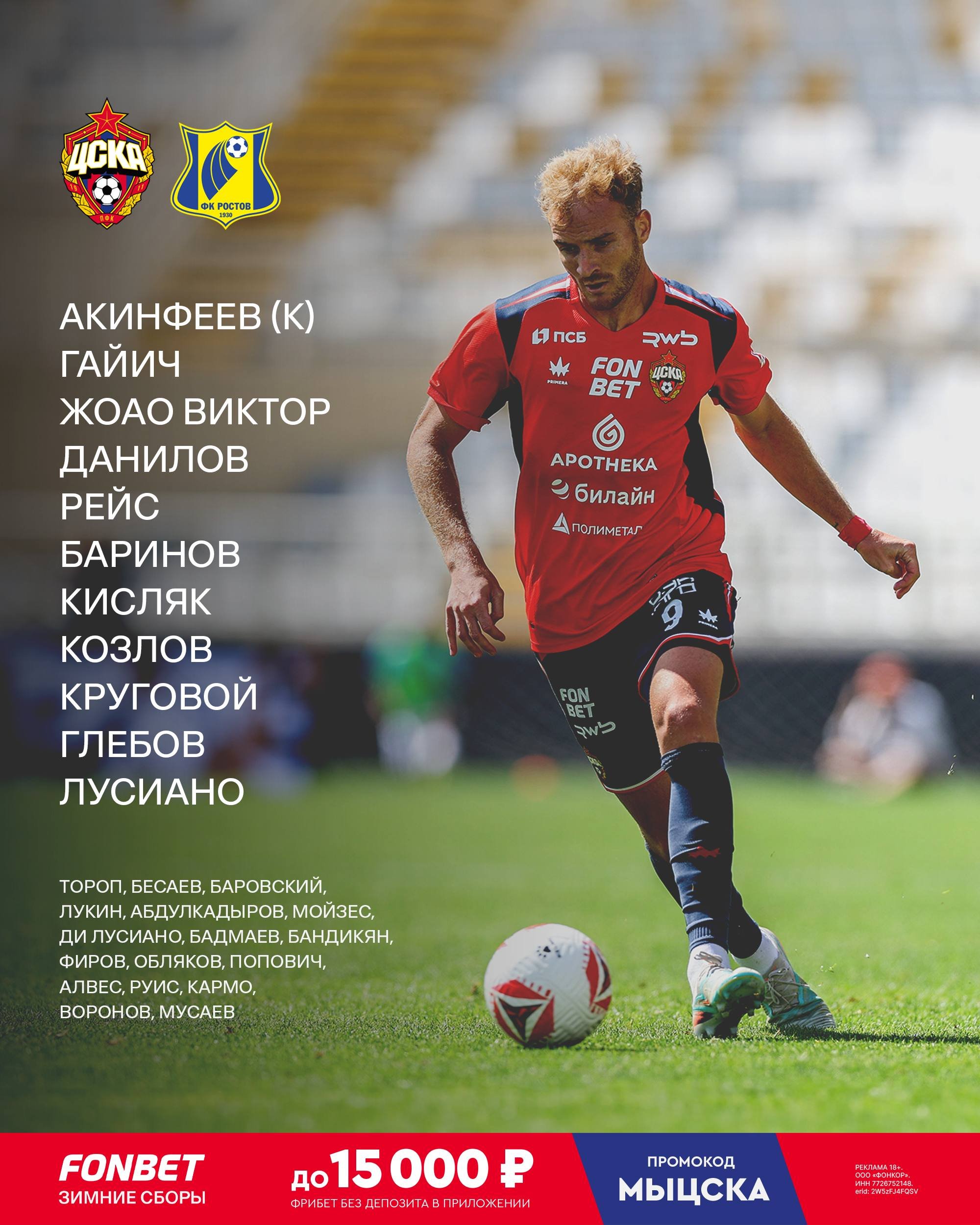 ЦСКА и "Ростов" объявили составы на контрольный матч