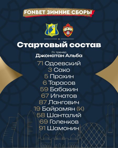 Стали известны составы ЦСКА и "Ростова" на товарищескую игру.