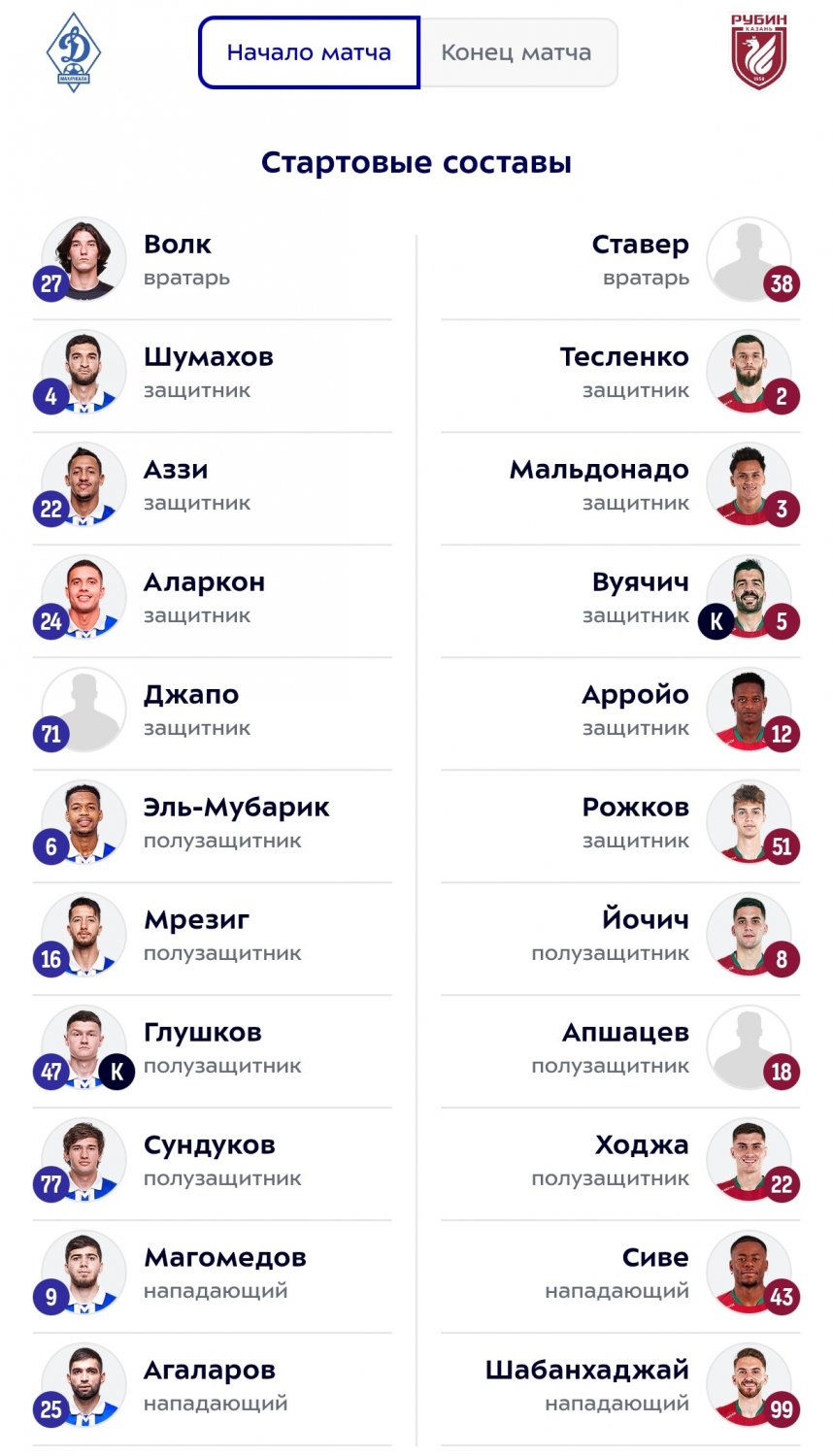 На данный момент махачкалинское "Динамо" занимает 14-е место в турнирной таблице чемпионата России, набрав 15 очков. "Рубин" располагается на 7-й строчке с 23 баллами в своем активе.
