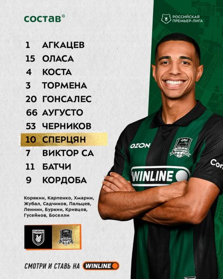 Опубликованы стартовые составы "Рубина" и "Краснодара".