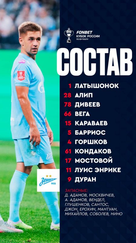 "Зенит" и "Динамо" Мх объявили составы на кубковый матч