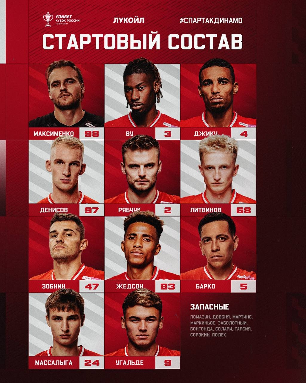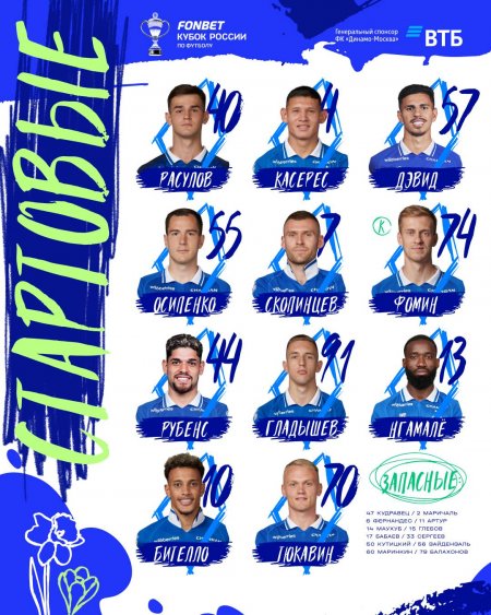 Стали известны составы на ответный полуфинал Кубка России "Спартак" - "Динамо"