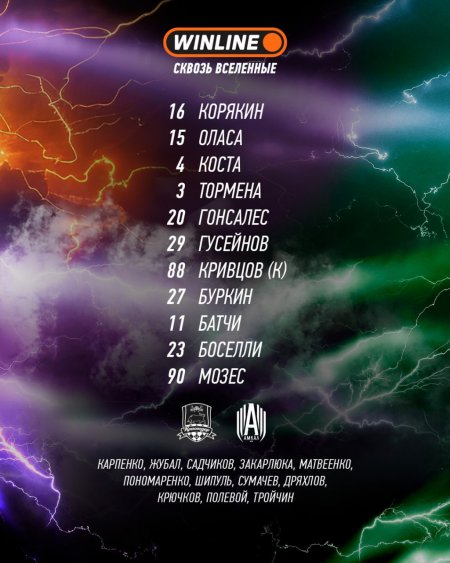 Стал известен стартовый состав краснодарцев на игру против "Амкала".