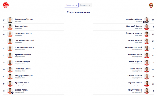 По итогам 22 сыгранных туров команда Заурбека Тедеева занимает десятое место в турнирной таблице чемпионата России с 22 набранными очками. Красно-синие располагаются на пятой строчке с 39 баллами в своем активе.