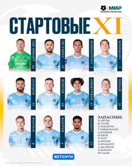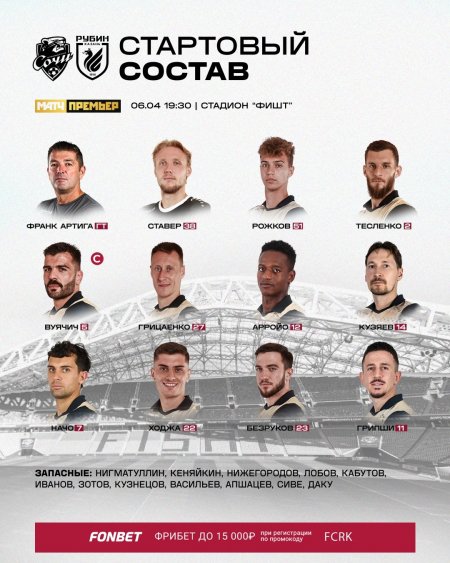 "Сочи" - "Рубин": стартовые составы команд на заключительный матч 23 тура РПЛ