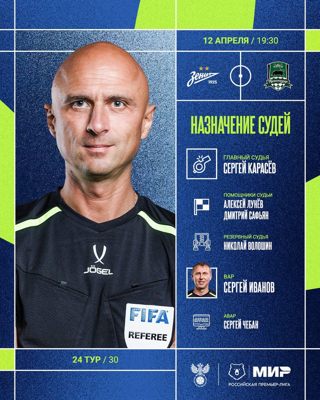 12 апреля состоится матч в рамках 24-го тура Российской Премьер-Лиги между петербургским "Зенитом" и "Краснодаром". Встреча пройдет на "Газпром Арене". Стартовый свисток прозвучит в 19:30 по московскому времени.